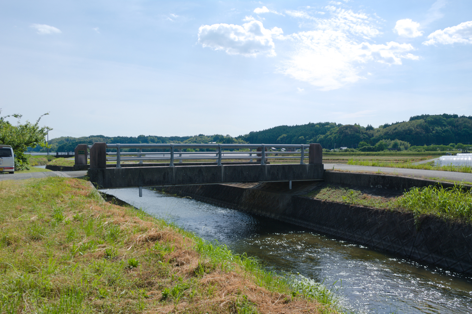 山鹿市寺島の常法寺の参道から、三号線を超えて左手の小径を行くと、石村用水にかかる小さな石橋がありました。