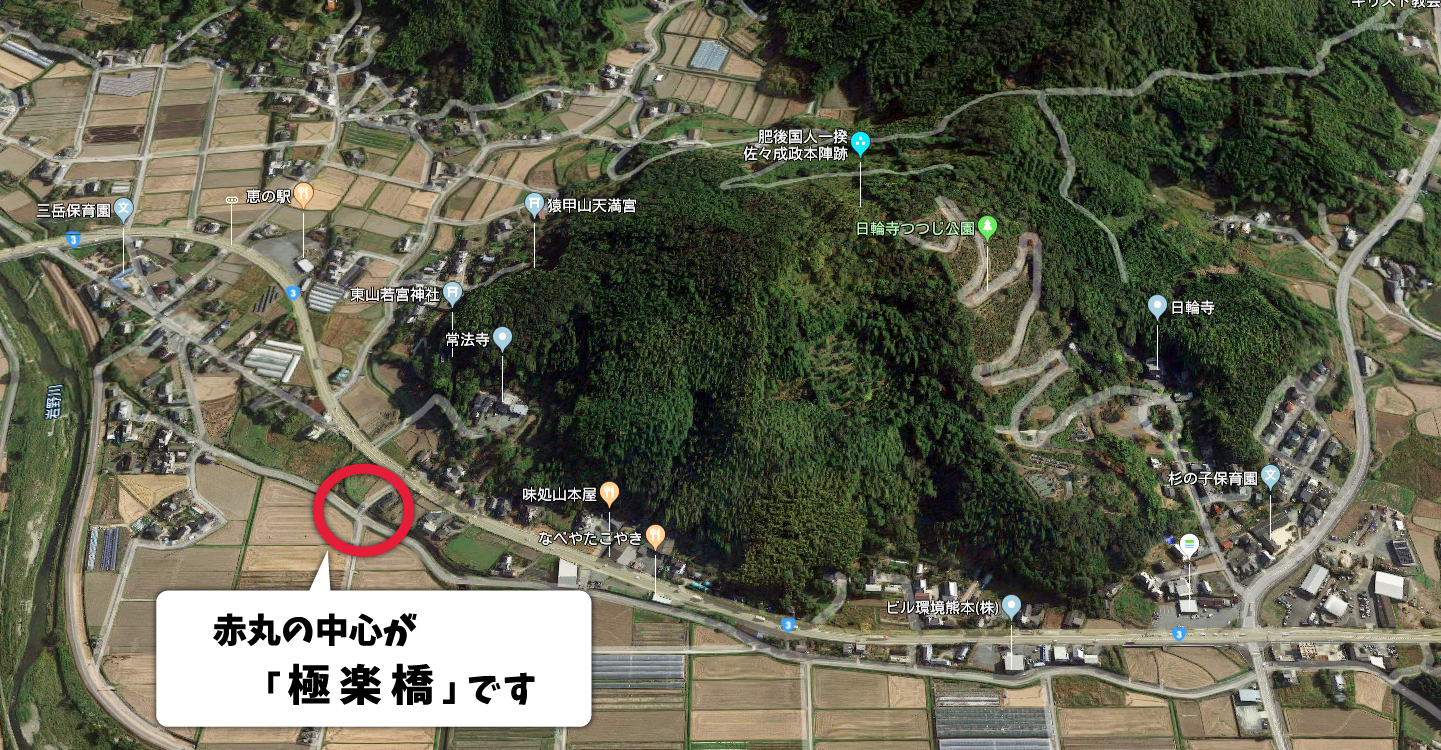 お寺にお参りした父と娘は、大変安心し、心も晴れて寺を出て、「行きは地嶽、帰りは極楽」と云って帰ったという事です』これから村人は、地嶽橋を、極楽橋というようになったといいます。