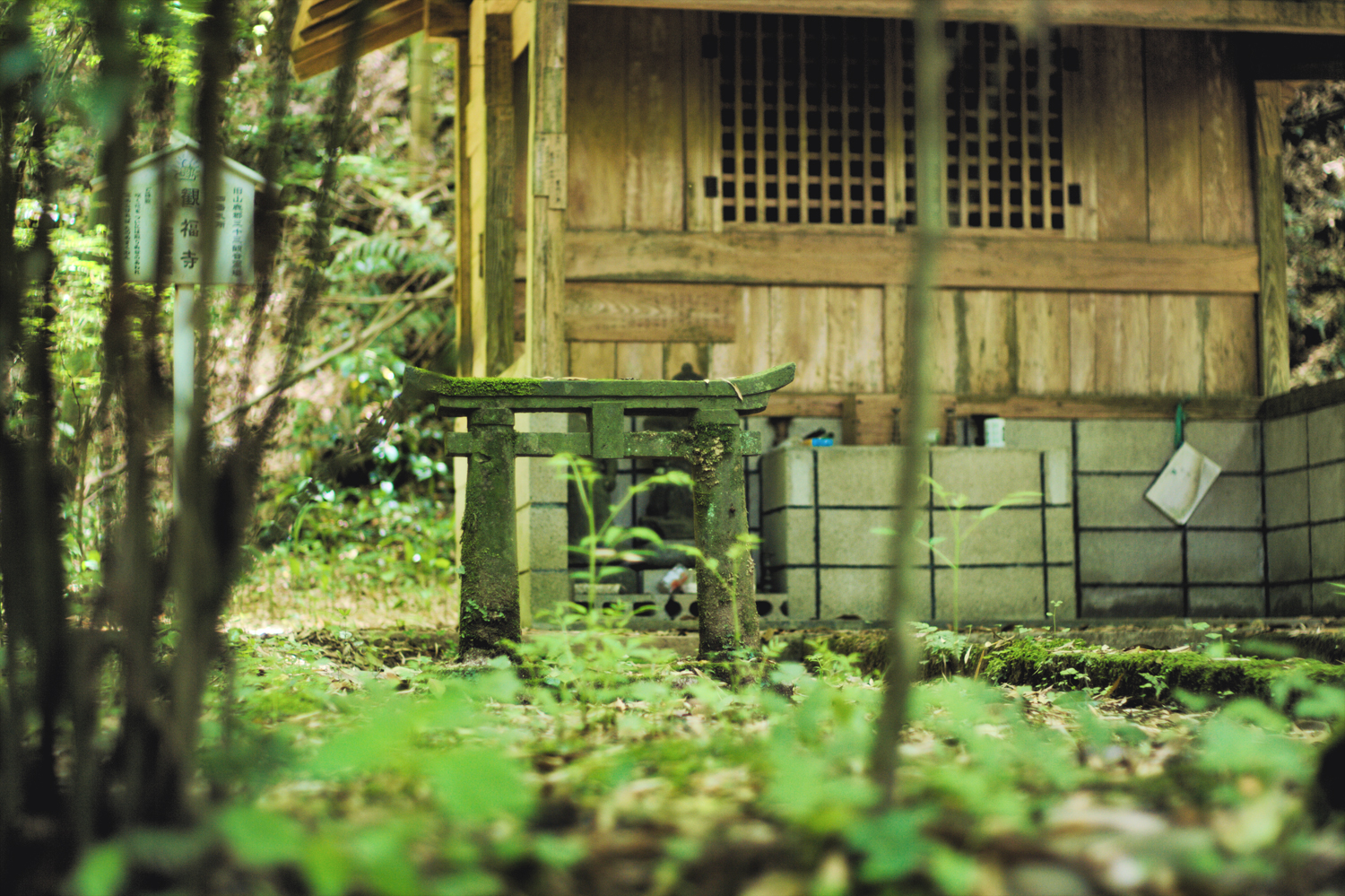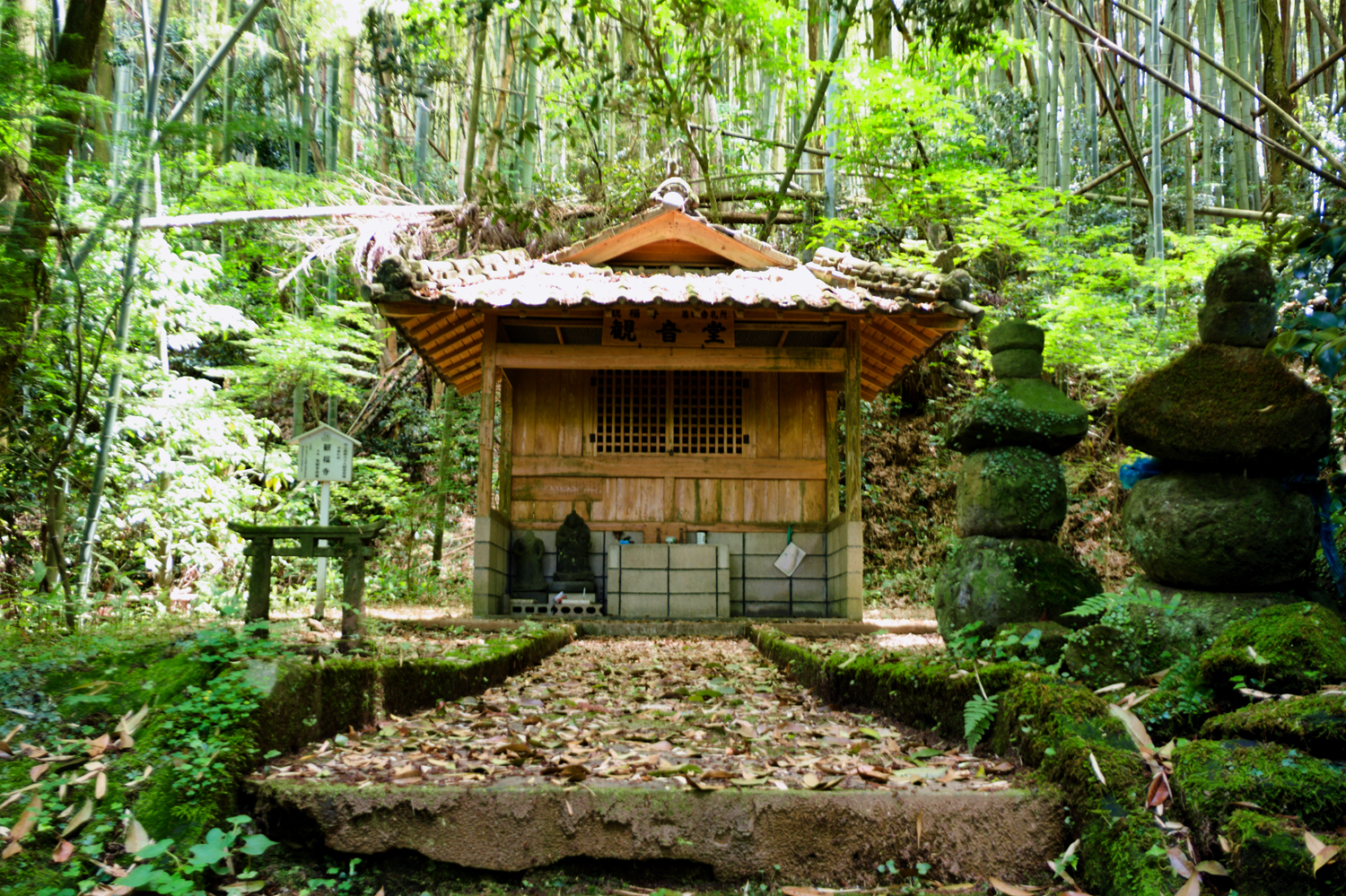 その先の杉林の山道を進むと100メートルほど先の右手に観音堂があります。