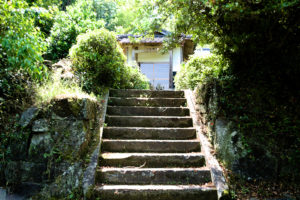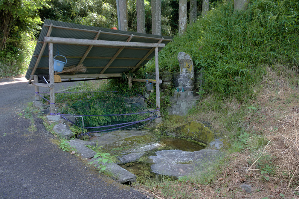 坂を上っていくと、途中水の湧き出る場所があり、その角を右に曲がると、すぐ左側の上がったところにお堂があります。