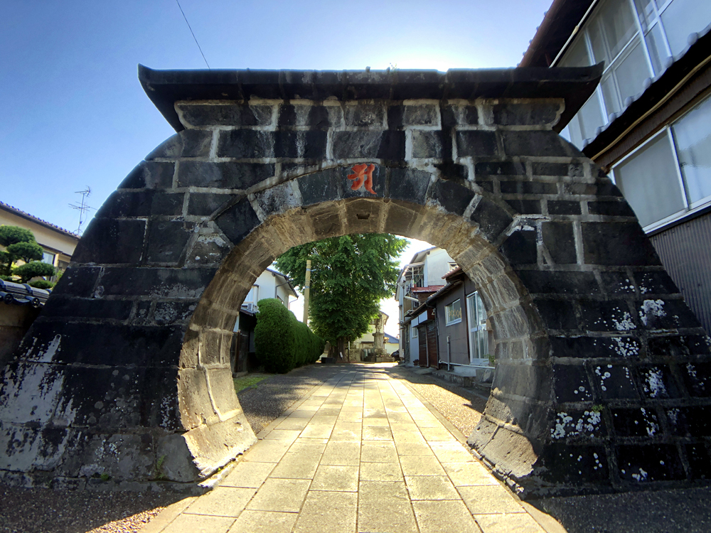 山鹿市の足湯から八千代座に上がって進んでいくと、左手にこの石門が出てきますね。