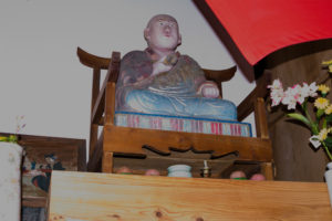 山鹿温泉を発見した『宇野親公』の菩薩所で、本尊は木彫の金色の観音立像。光背が見事です。