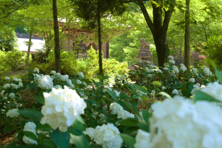 またこちらは、白い紫陽花が多く、鳥居から階段を上がり、楼門までの参道には紫陽花の中を通る事が出来ます。