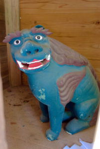 拝殿の手前両脇には灯篭があり、灯篭の上には変わった何かが飾られています。