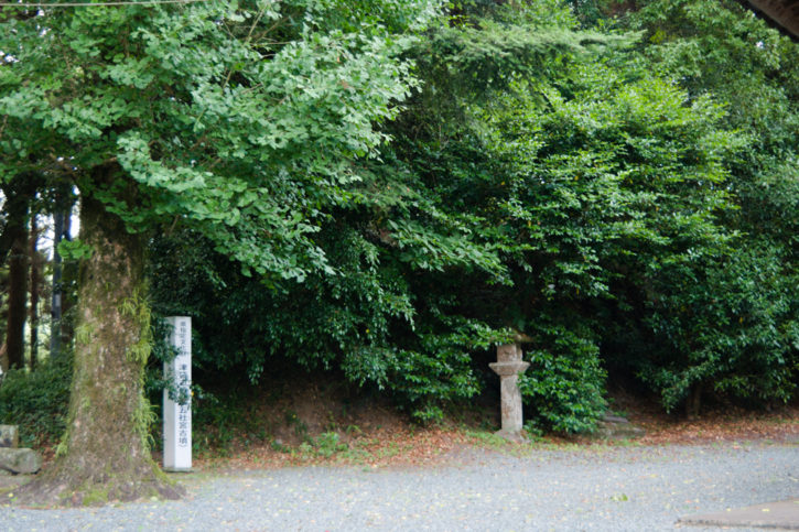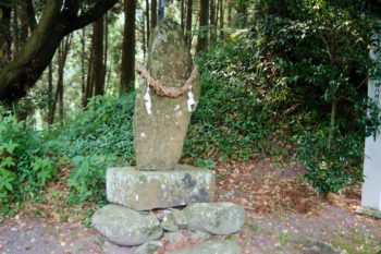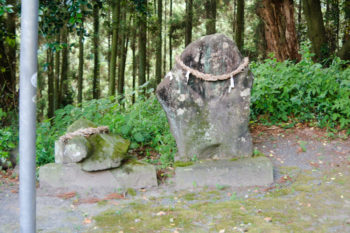 神社の東南、参道石段の南側に箱式石棺が出土したと伝えられる。