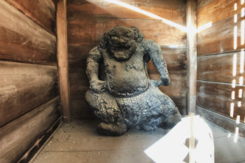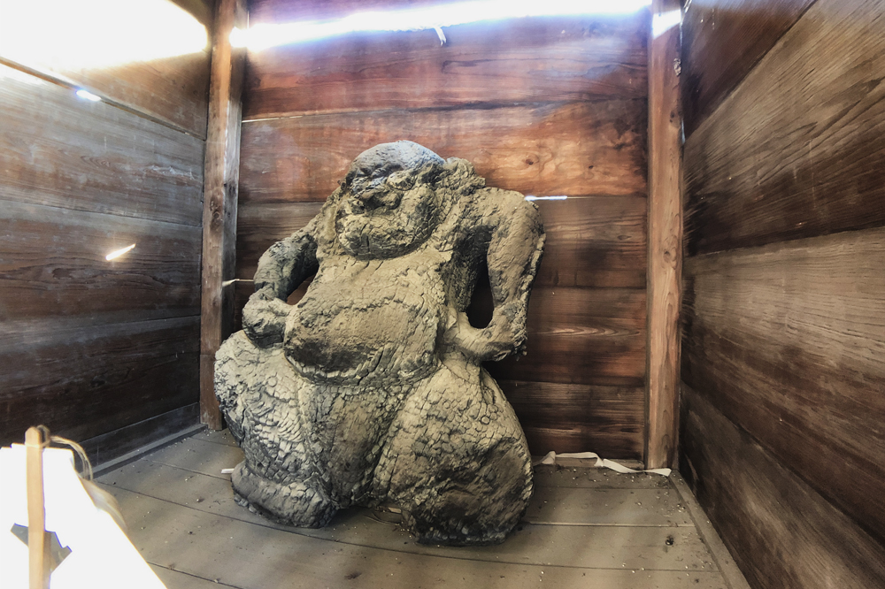 楼門には、手前に焼けた力神様が鎮座されています。