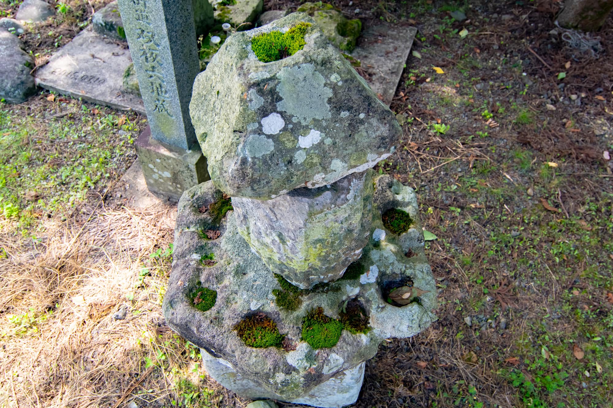 各パーツはサイズ感がバラバラで、中台は盃状穴が多数にあり霊仙の六地蔵だと、台石が同じような形状だったので組み合わせが本来どうあったか気になるところです。