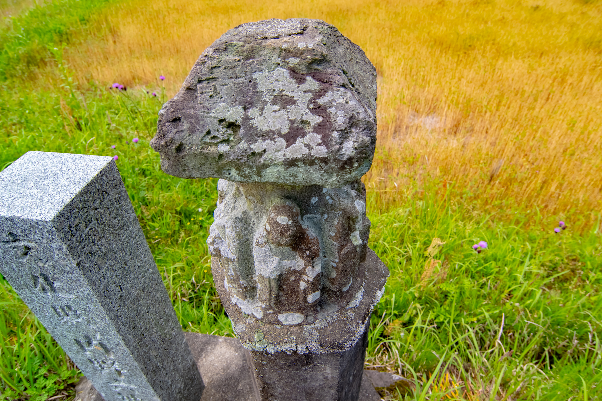 建立年代も不明ですね。台石に無数の盃状穴が見られます。