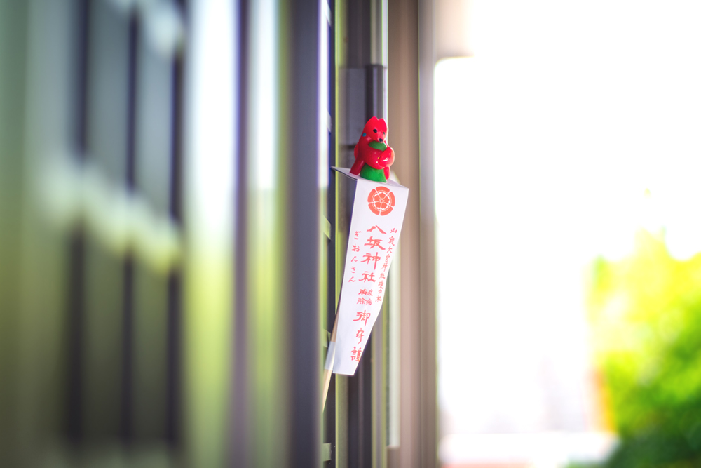 「犬子ひょうたん」は、江戸の頃に疫病が流行り、それを鎮めた神さまをお祀りする大宮神社境内社八坂神社の御守です。