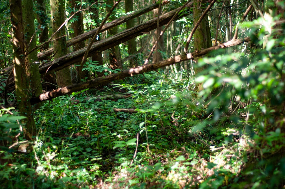 入り口の草を刈り、倒木をよけ、足もとを確かめる程度。
