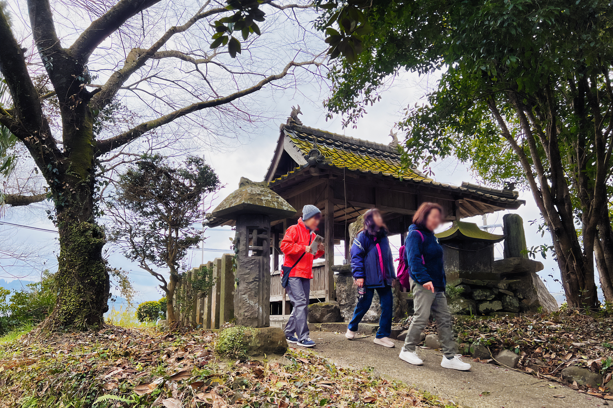 私がいつもさるく際に楽しんでみている石仏様や狛犬、神社などの装飾の面白さを感じている部分と、一般的に伝えられている由緒や歴史をお話し、その事に新たな楽しみを感じていただけたようで、いい時間となりました。
